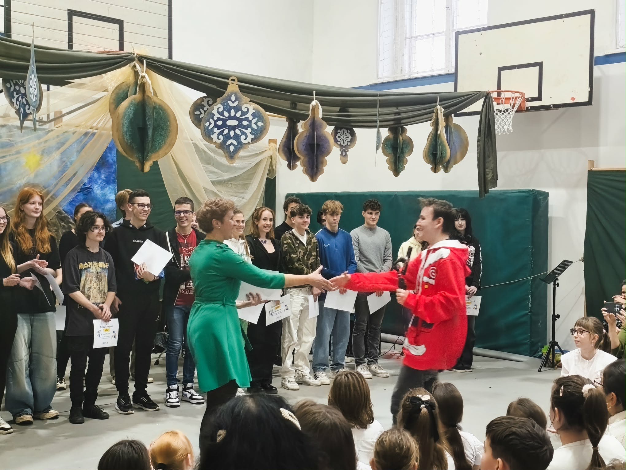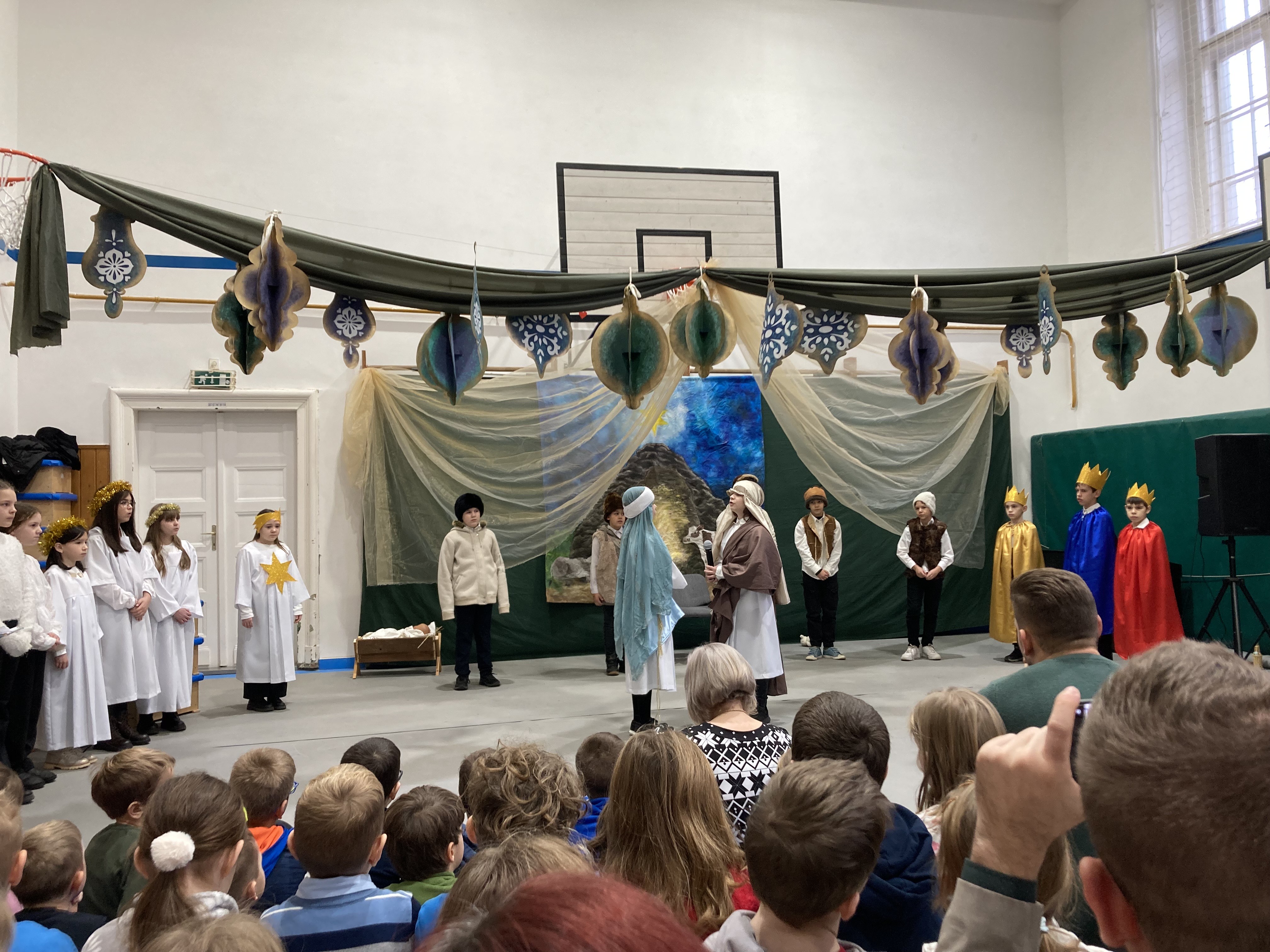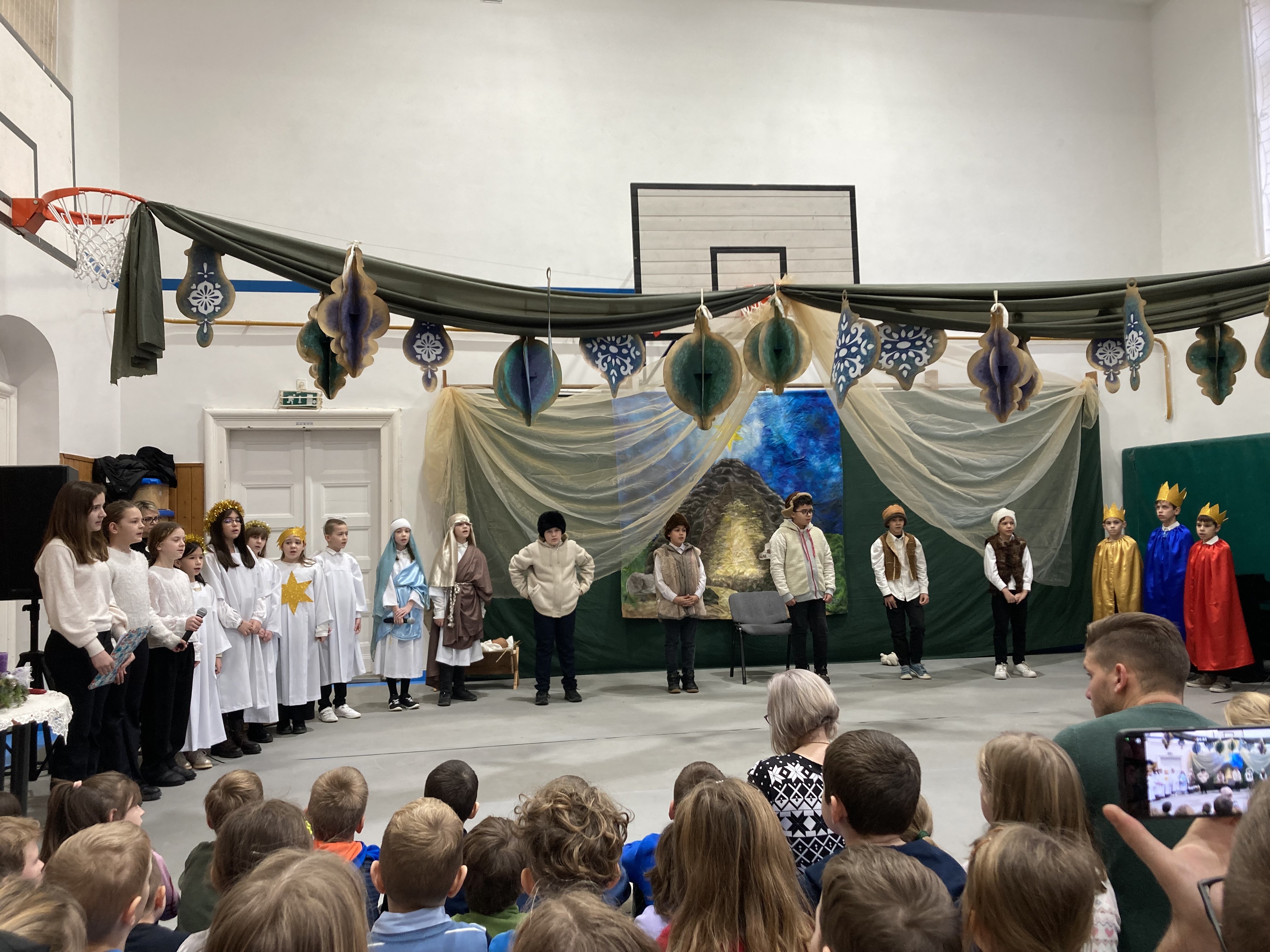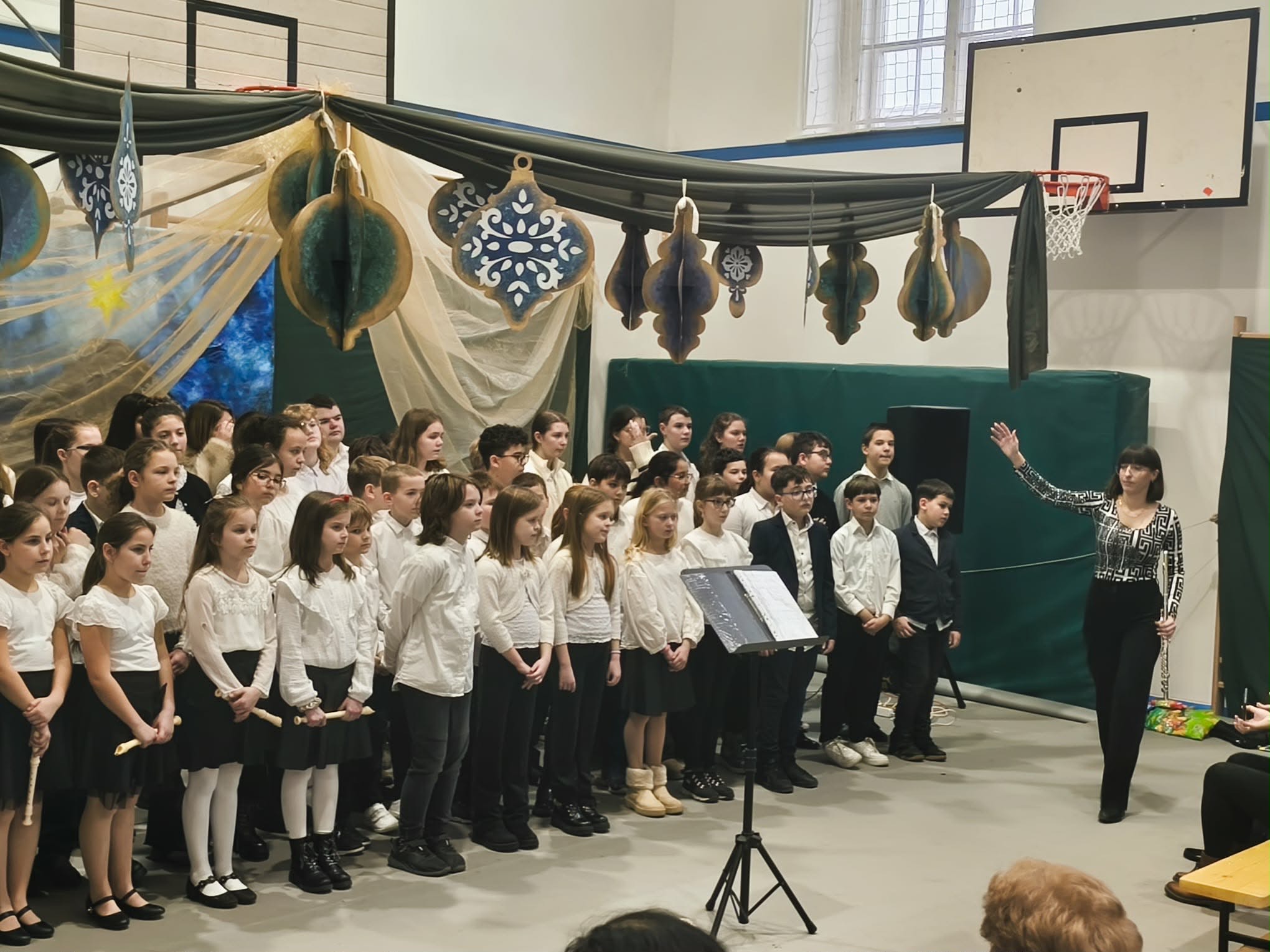 Iskolánkban a 2025-ös tanév utolsó tanítási napján ünnepi hangulatban búcsúztattuk az első félévet. Az alsó tagozatos diákok egy „Betlehemi játék” címmel bemutatott előadással készültek, amely Jézus születésének történetét elevenítette fel. Ezt követően a kórus és az énekkar több karácsonyi dalt és koncertműsort adott elő, tovább emelve az esemény meghitt hangulatát. A rendezvény végén Németh Dóra gimnáziumi intézményvezető okleveleket adott át azoknak a tanulóknak, akik kiemelkedő teljesítményükkel érdemelték ki az elismerést. Ezekkel az ünnepi pillanatokkal zártuk le a félévet, és jó hangulatban kezdtük meg a téli szünetet.