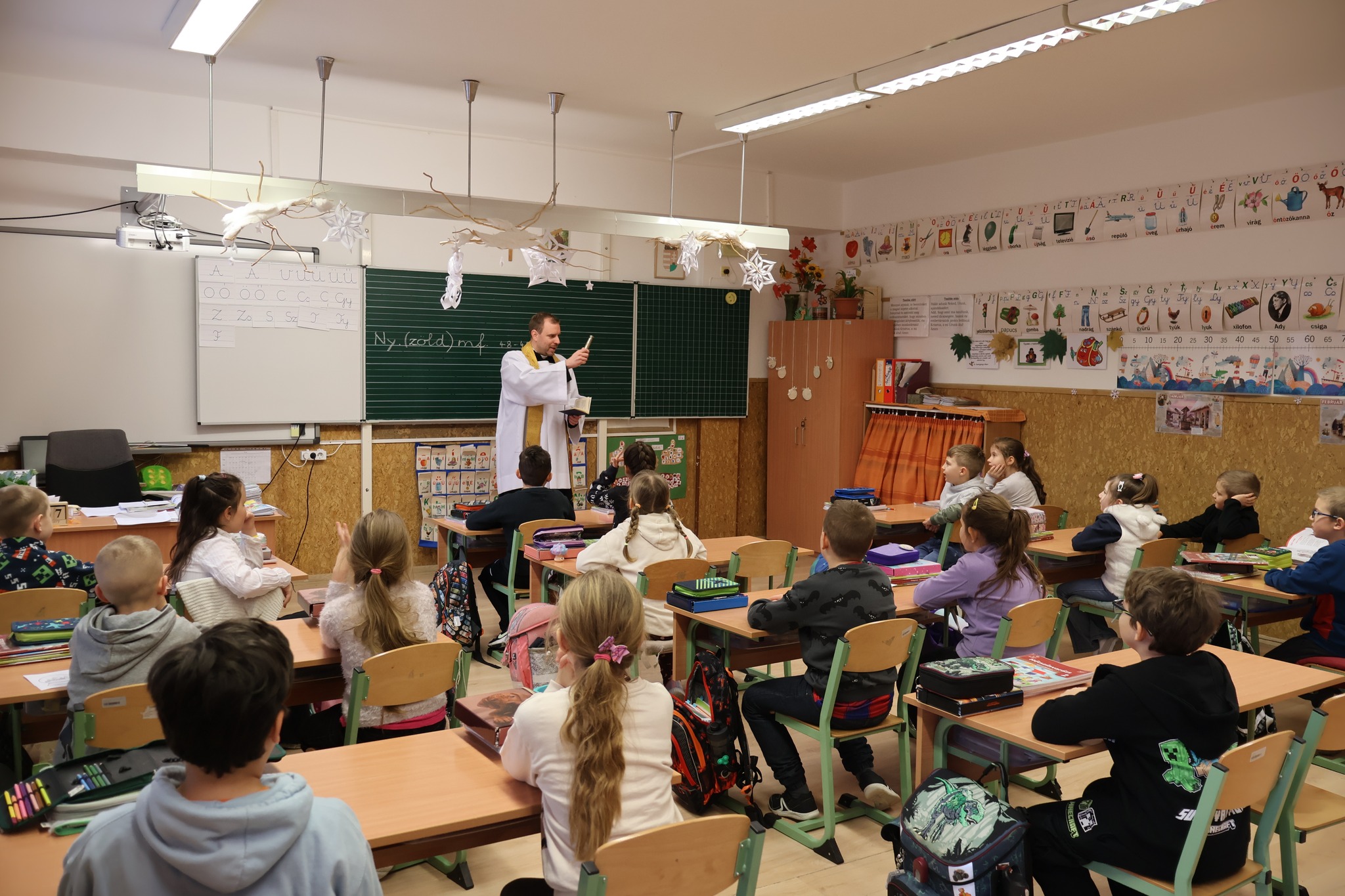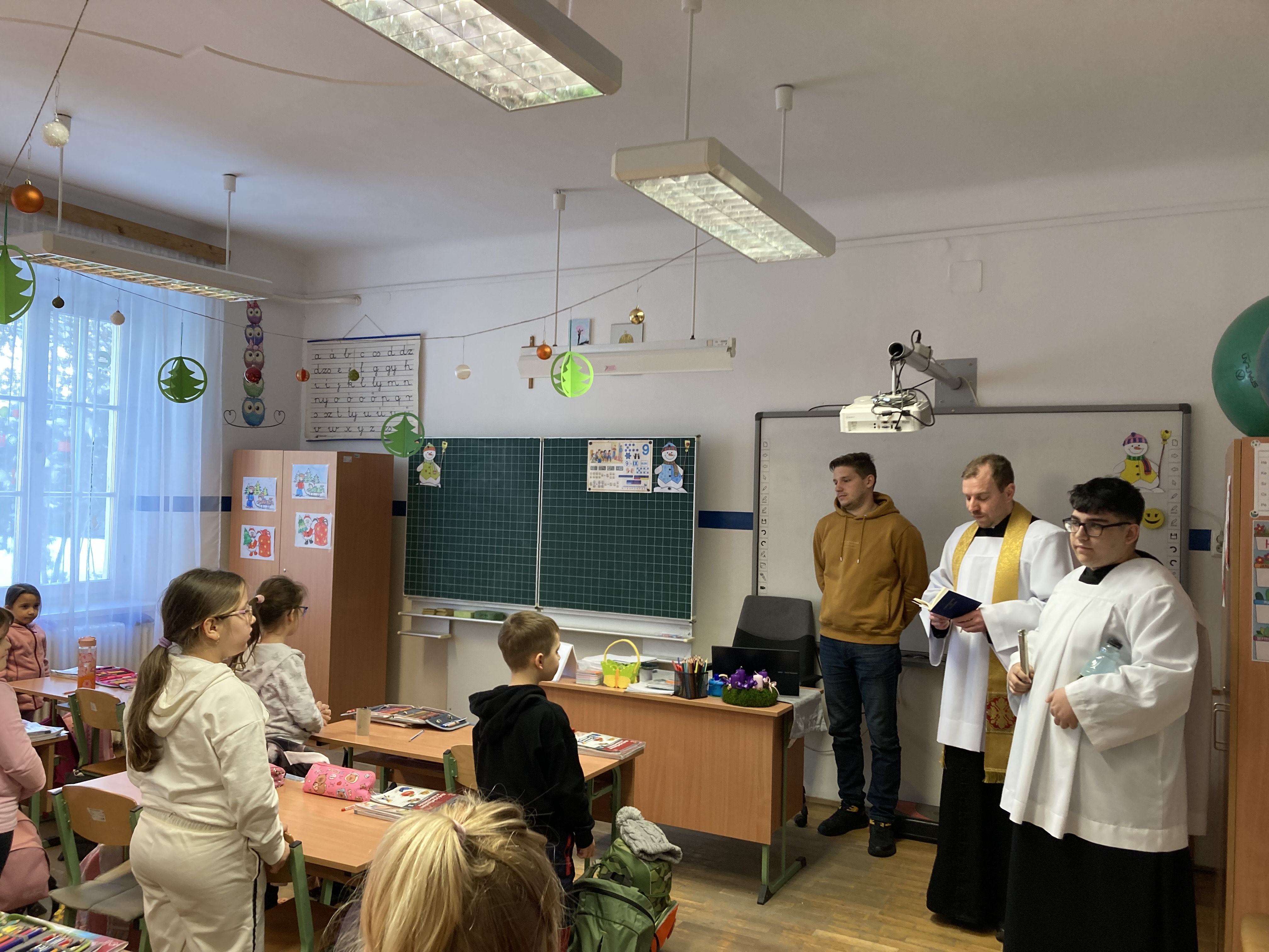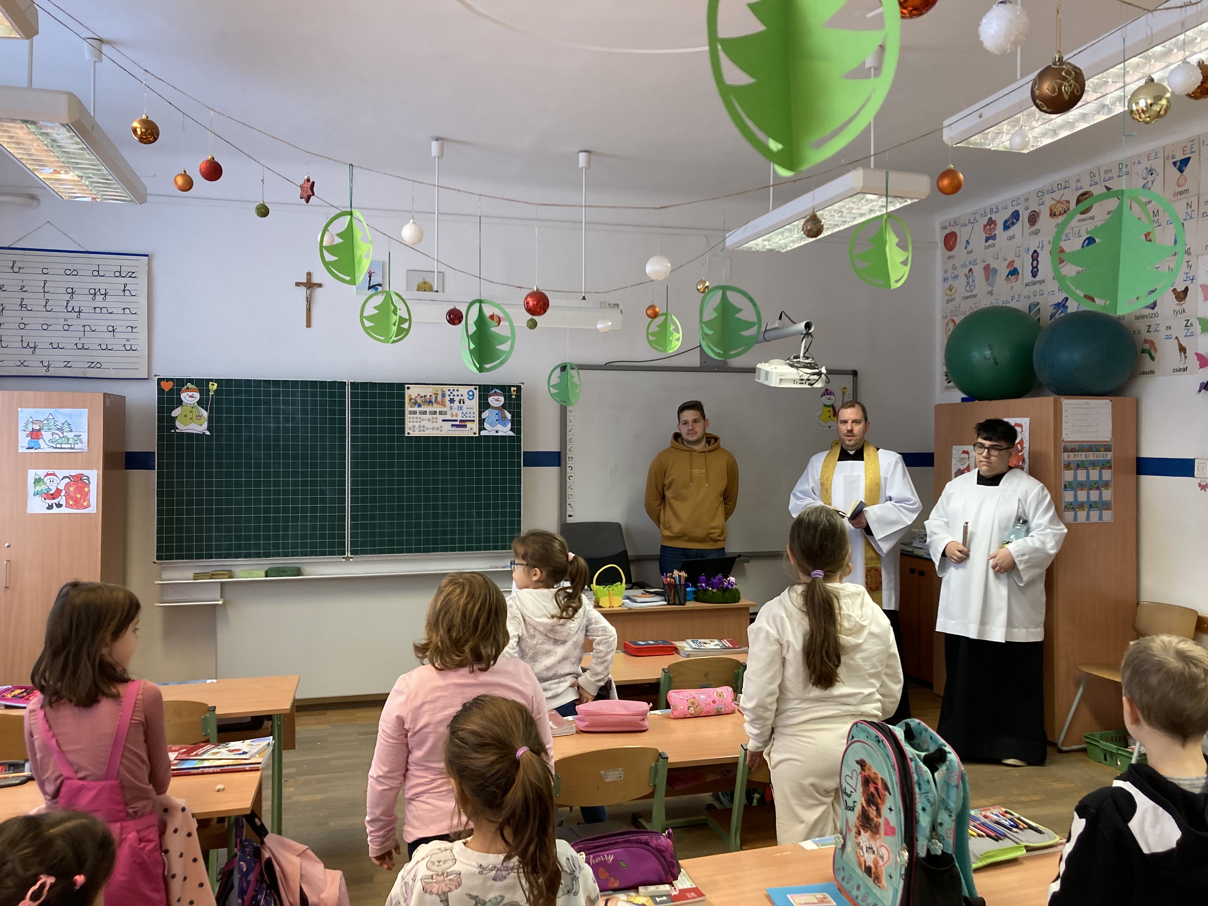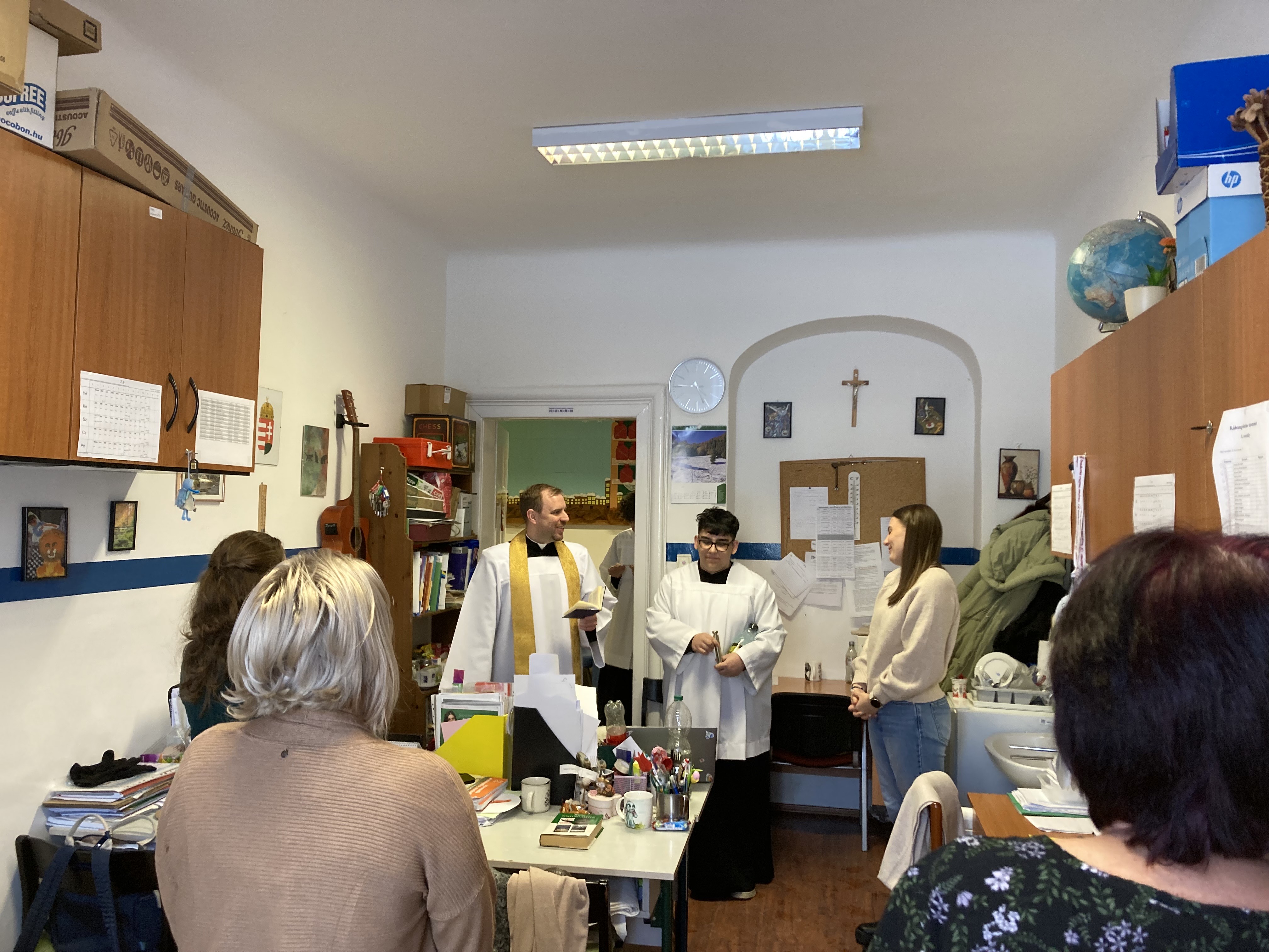 A szentmisén megszentelt vizet Gábor atya intézményünk mindkét épületébe elvitte, hogy az összes termet megszentelje, és az ott tartózkodókat megáldja. Bízunk abban, hogy a téli szünet meghitt élményeivel töltekezve, karácsony örömével és békességével a szívünkben Isten áldása kíséri majd a küzdelmesebb hétköznapjainkat is.